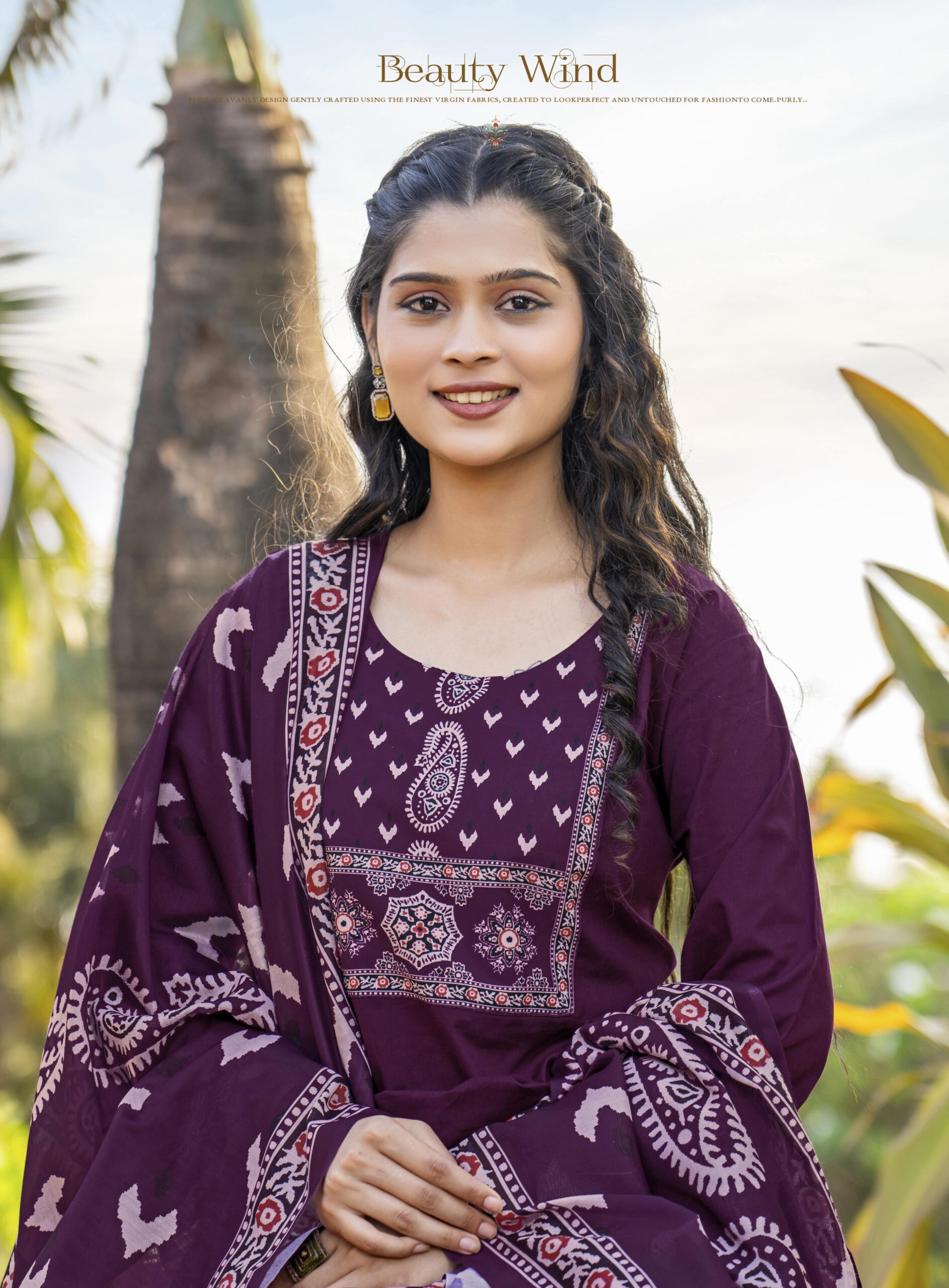 Color: Deep Wine/Purple + Beige print